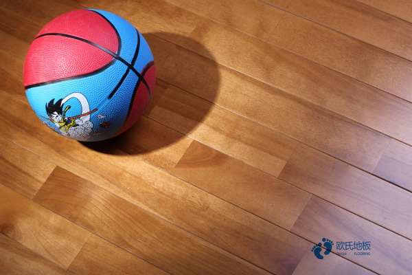 也應具有一定的“剛性”。具體測量法:當一個20KG的重物在一定高度落在地面時,落點地面垂直變形如果是A,在離落點500MM測試垂直高度是B。那么要求:B和A兩點的比值應小于或等于15%。滑動特性:在籃球運動中,運動員經常需要快速跑動。DIN要求運動員在跑動中突然停下來到較后靜止,其間滑動距離應保持在0.4-0.6m之間。球類的回彈:DIN要求籃球在體育館專用木地板必須具有一定的回彈性,這樣才能帶來較好的運動反饋。如果一個600克的標準籃球從1.8m落向水泥地面上回彈的高度是A,落向體育地板時回彈的高度是B,那么要求B和A兩點的比值應大于或等于90%。滾動負荷:除了以上幾點之外,DIN還要求體育館專用木地板能夠承受用手推車將運動器材在場上滾動。