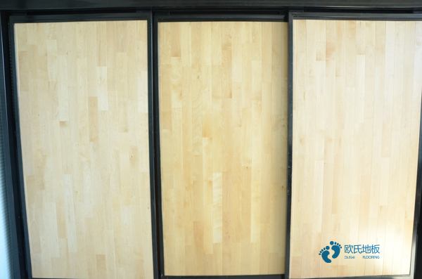6.籃球木地板安裝前應進行挑選,剔除有明顯質量缺陷的不合格品。將顏色花紋一致的鋪在同一房間,有輕微質量缺欠但不影響使用的,可擺放在床、柜等家具底部使用,同一房間的板厚必須一致。購買時應按實際鋪裝面積增加10%的損耗一次購買齊備。7.鋪裝籃球木地板的龍骨應使用松木、杉木等不易變形的樹種,木龍骨、踢腳板背面均應進行防腐處理。8.鋪裝實籃球木地板應避免在大雨、陰雨等氣候條件下施工。施工中好能夠保持室內溫度、濕度的穩定。9.同一房間的籃球木地板應一次鋪裝完,因此要備有充足的輔料,并要及時做好成品保護,嚴防油潰、果汁等污染表面。安裝時擠出的膠液要及時擦掉。歐氏運動木地板安裝團隊,15年來已服務國內外8000多家體育場館、健身中心和劇院舞臺。