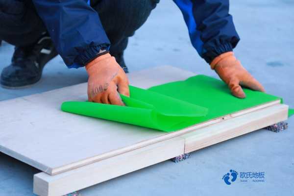 十一、鋪放防潮膜:將體育木地板專用防潮膜按面板鋪設(shè)方向進行鋪展,接縫應(yīng)避免重疊,接縫應(yīng)用壓敏膠帶粘連。